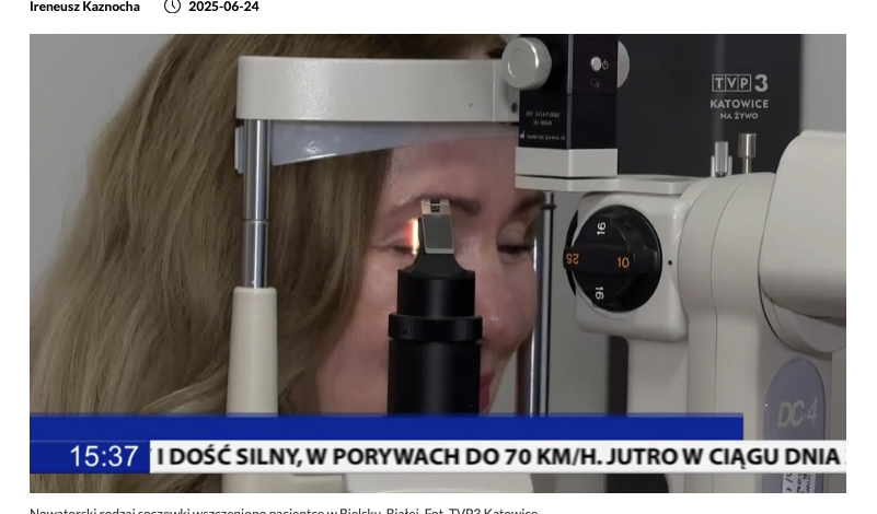 Online ● bielsko.twoje-miasto.pl (Regionalne wiadomości) ● 16. 6. 2025, 9:22 Link:https://bielsko.twoje-miasto.pl/art-zdrowie/bielscy-okulisci-wszczepili-pacjentce-nowatorski-i735160 Zabieg trwał kwadrans. Lekarze u 65-letniej pacjentki w znieczuleniu miejscowym operacyjnie usunęli naturalną zmętniałą